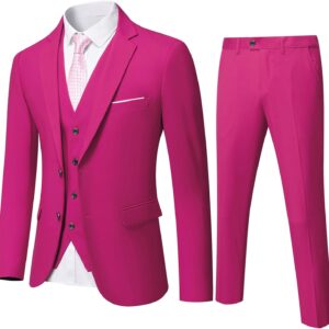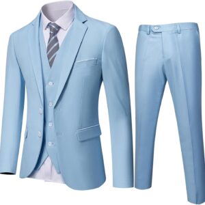 Men's 3 Piece Slim Fit Suit Set, Two Button Blazer Solid Jacket Vest Pants Wedding Business Suit