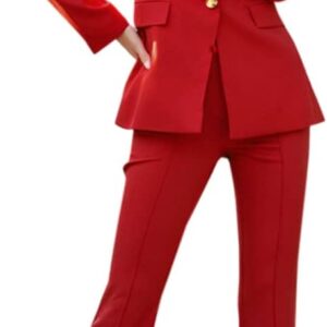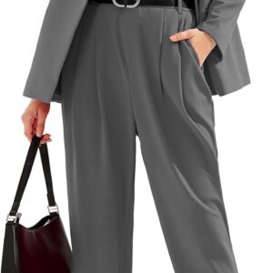 2 Piece Outfits for Women Dressy Blazer Jacets High Waisted Straight Leg Pants Suits Set Business Casual Office