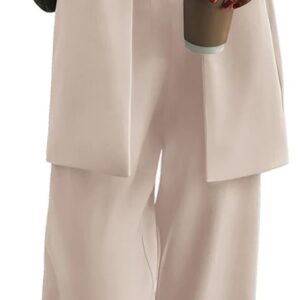 Women Spring Fall 2 Piece Blazer Set Casual Loose Long Blazer Jacets and Dressy Wide Leg Pant Suits Pocets