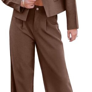 Suits for Women 2 Piece Sets Business Casual Outfits Dressy Cropped Blazer Wide Leg Pants Suit Office Work