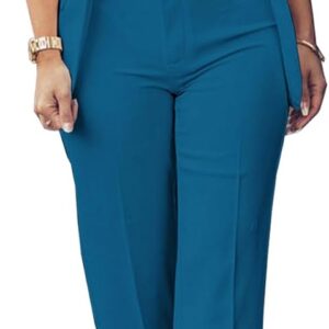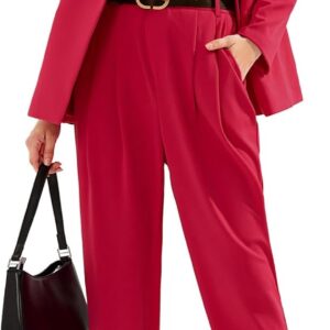 Women Business Blazer and High Elastic Waist Pant Suit Set Loose Fit Casual Fall Winter 2 Piece Suits for Work